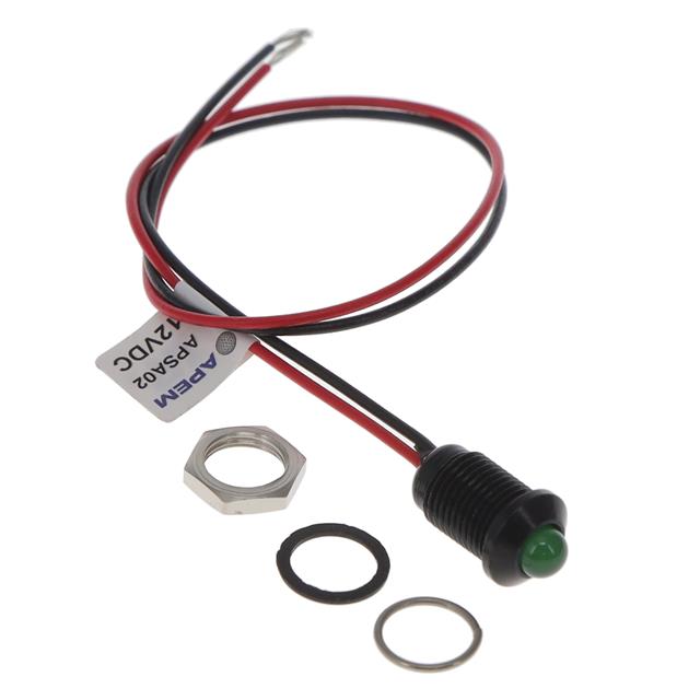 LED Panel Indicator Green Diffused 100° 12V 20mA Wire Leads - 7.87"" (200.00mm)