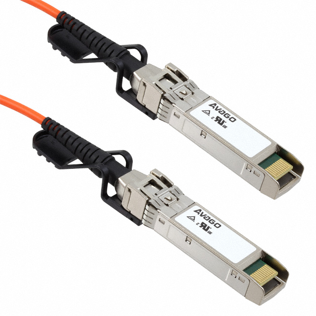 The Broadcom Limited AFBR-7CER03Z is a 10Gbps Ethernet Active Optical Cable (AOC) module. This pluggable SFP+ transceiver operates at an 850nm wavelength and requires a 3.3V supply voltage. Designed for high-speed data communication, it is commonly utilized in enterprise networking and data center applications where reliable 10 Gigabit Ethernet connectivity is essential. The module's SFP+ form factor ensures compatibility with a wide range of networking equipment. It is supplied in trays for efficient handling and integration into existing infrastructure.