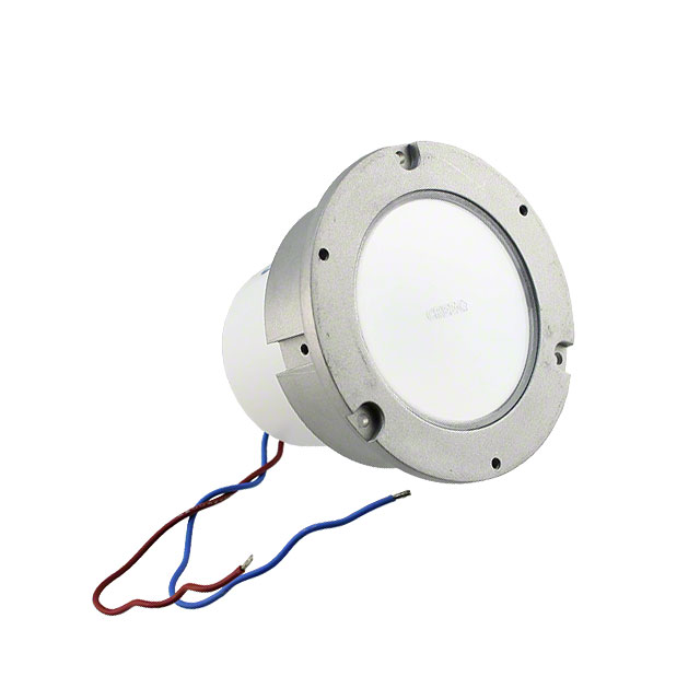 The Cree LED LMR2, TrueWhite® LED Engine, part number LMR020-0650-35F9-20100TW, is a warm white (3500K) round LED lighting component. Featuring a high CRI of 90, this module delivers excellent color rendering. Its Plug and Play configuration simplifies integration into various lighting systems. The LMR2 series is known for its TrueWhite® technology, providing consistent and reliable white light. This LED engine is suitable for applications requiring high-quality illumination, including architectural lighting, retail displays, and general illumination where accurate color reproduction is critical. The unit has a diameter of 88.20mm and a height of 70.00mm, with a flat lens. It offers TRIAC dimming capabilities.