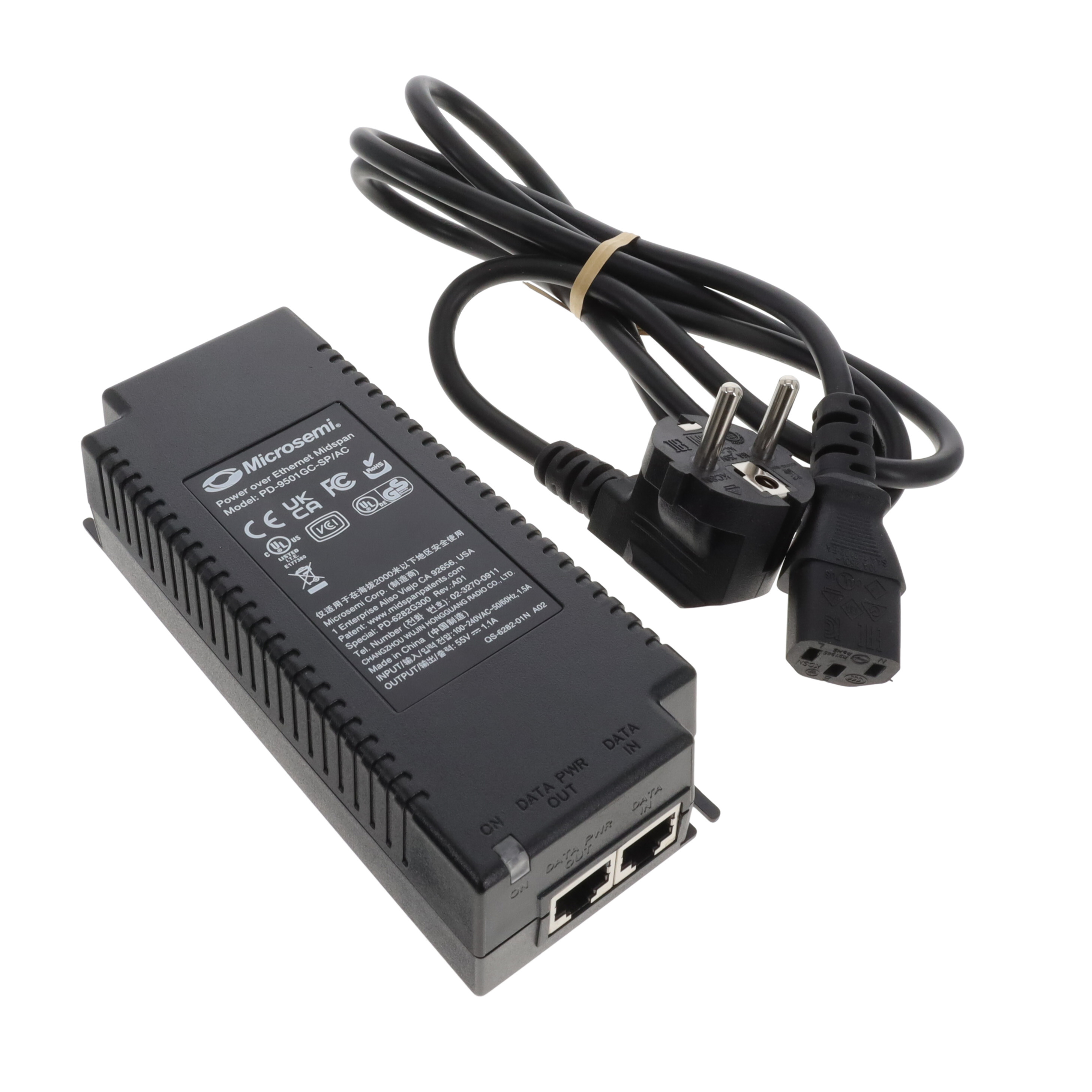 55V Power Over Ethernet (POE) 1 Port Midspan Injector 10/100/1000 Mbps Data Rate