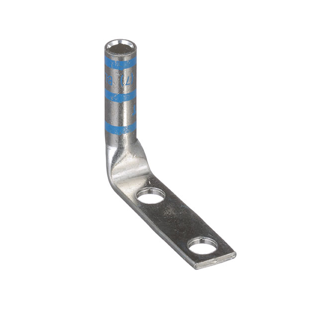 Panduit Corp's Pan-Lug™ LCC6-14DWF-L is a non-insulated rectangular tongue terminal connector designed for efficient wire termination. This component accommodates 6 AWG wire and features a 1/4" stud size for secure connections. The terminal style includes two stud holes, and the termination method is crimp, with a barrel for robust electrical contact. With a tab thickness of 0.080" (2.03mm) and an outer edge width of 0.480" (12.19mm), it provides a substantial connection point. The mounting type is flexible, supporting both free hanging (in-line) and right-angle configurations. This Panduit Corp terminal is commonly utilized in power distribution and industrial automation applications. Supplied in bulk packaging, the LCC6-14DWF-L offers a reliable solution for demanding electrical infrastructure.