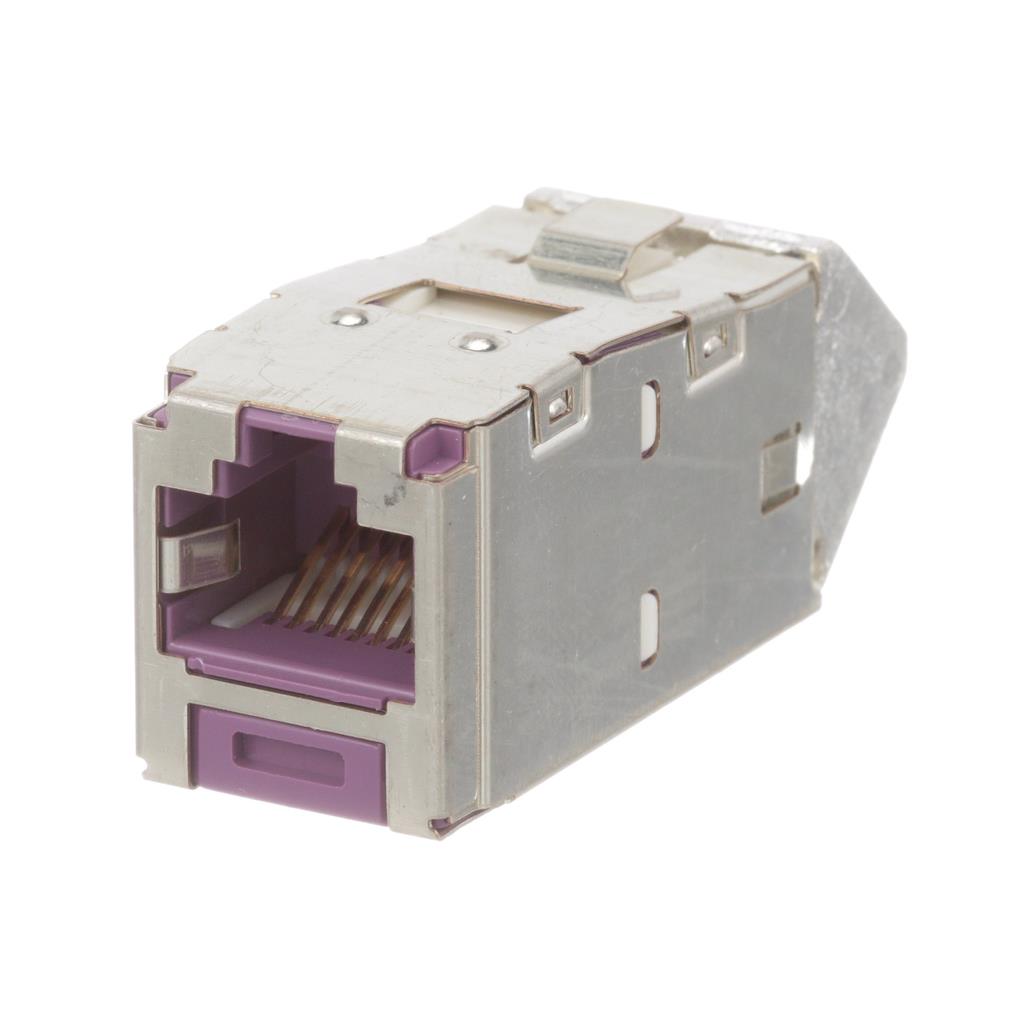 Panduit Corp Mini-Com® CJSUD688TGVLY is a shielded Cat6a modular jack connector. This 8p8c (RJ45, Ethernet) component features a 45° angle orientation and IDC termination for efficient field termination. Constructed with phosphor bronze contacts finished in gold, it ensures reliable signal integrity for high-speed data transmission. Designed for panel mounting, this single-port jack is suitable for demanding networking infrastructure applications, including data centers, enterprise networks, and industrial automation systems where robust performance and shielding against electromagnetic interference are critical. The "Tab Direction: Down" designation further specifies its physical configuration for integration into modular patch panels and wall plates.